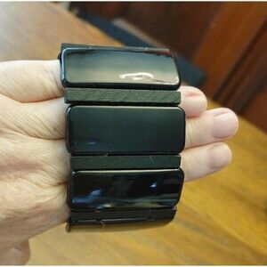 Vtg 1960s-70s Fashion Bracelet Black Stretchy (050)