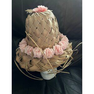 Vtg 1967 Hat Women’s Pink Hawaiian Handmade Palm Frond Woven 7″ x 10 1/2″
