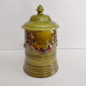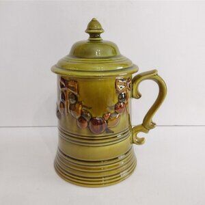 Vtg 1968 Los Angeles Potteries Pitcher Stein Cookie Jar Avacado Green Fruit