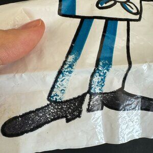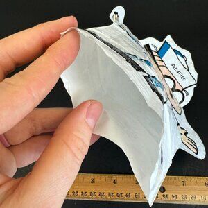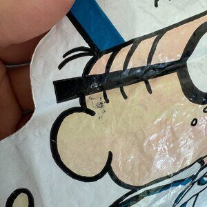 Condition: The ink has come off towards the bottom of the image on his pant area, also some discoloration/blemish on his glasses near his ear and throughout the areas where his skin is. No rips or tears. Some wrinkles in the plastic material from it being folded for years. SEE PHOTOS