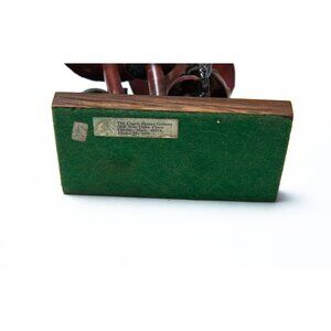 The children lean over the wood base in the hope of their side will win. The sculpture is 10" wide x 6" tall. The wooden base is 8 1/2" x 3" x 1 1/2".