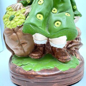 This hand-painted ceramic figurine from the 1970s captures a charming girl in a polka-dotted bonnet and dress, holding a flower-accented bag. Its vintage appeal and intricate details make it an ideal decorative collectible that exudes nostalgic charm.