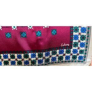 Vtg 1970’s ECHO Scarf Chinon Azlon Silk Scarf Maroon Blues Yellow Floral Japan