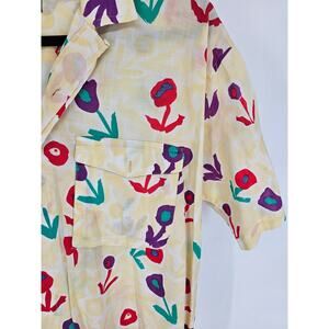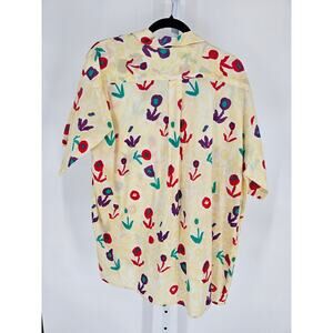 Step back in time with this vibrant vintage 1970s Generra Collection men's short-sleeve button-up shirt! Featuring a bright and bold floral pattern, this shirt is a true statement piece. Perfect for adding a retro touch to your wardrobe.