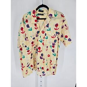 Vtg 1970s Generra Collection Mens L Short Sleeve Button Up Shirt Bright Floral