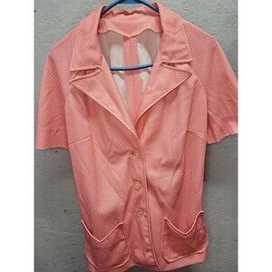Vtg 1970's Handmade Blazer Smock Suite Jacket Pink Poke A Dot Sz 2x