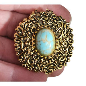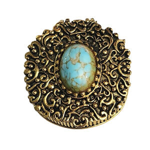 Vtg 1970s Max Factor Antiqued Cabochon Hypnotique Faux Turquoise Perfume Solid