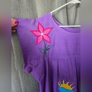 Vtg 1970s Mexican Oaxacan Purple Applique Mumu Midi Dress Sixe XL