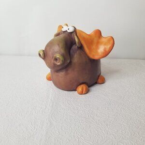 Vtg 1970's Paolo Chiari Moose Coin Bank Italy Whimsical Cartoonish Brown Orange