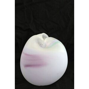 Vtg 1970's Purple Green Iridescent Bulbous Vase Abstract Design Studio Art Glass Unique Opening