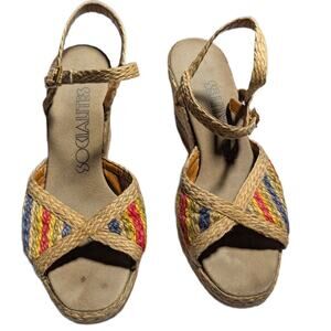 Vtg 1970s Socialites Rainbow Jute Buckling Ankle Strap Espadrille Sandals Sz 6