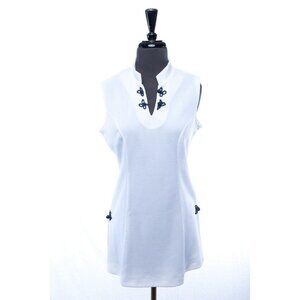 Vtg 1970's Tennis Dress By Saks Fifth Avenue Active Sportswear Size 14 White With Blue Frog Button Closure