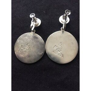 Vtg 1970's Turquoise & Coral Inlaid Earrings Double Circle Screw Back Sterling
