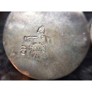 Vtg 1970's Turquoise & Coral Inlaid Earrings Double Circle Screw Back Sterling Silver 925 Mexico Non Pierced