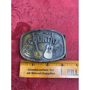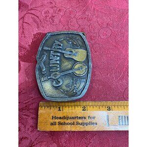 Vtg 1976 Country Music Belt Buckle Guitar Banjo Music Notes Indiana Metal Craft