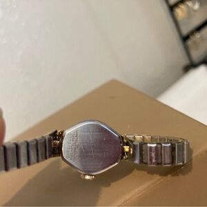 Elegant Timex watch with a gold face and silver band. Perfect for any occasion.