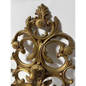 Vtg 1978 Syroco Triple Gold Ornate Wall Sconce Candle Holder Hollywood Regency