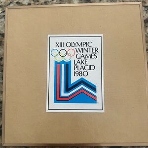 Vtg 1980 Olympic Winter Games Lake Placid Playing Cards Old Stock MIRACLE ON ICE Commemorative box featuring the 1980 Lake Placid Winter Olympics design. Beige with colorful Olympic logo. Some fading, normal condition for age