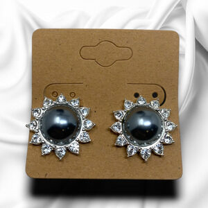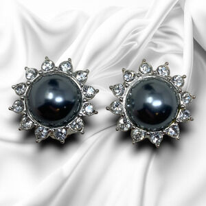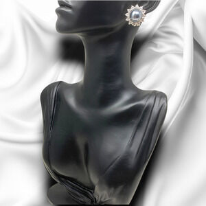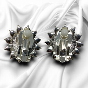 Vtg 1980's Cabochon & Crystal Starburst Clip On Earrings Couture Runway Sparkly