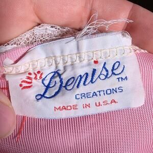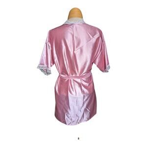 Vtg 1980s Denise Bubblegum Pink Satin Dot Textured Short Sleeve Lace Trim Robe M