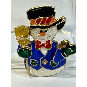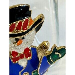 Vtg 1980's Enamel Christmas Snowman Brooch Pin W/ Moving Waving Arm. Emblished