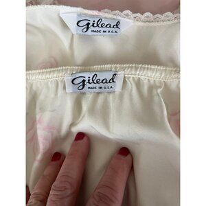 Vtg 1980's Gilead Peignoir Set Nightgown (S) and Robe (M) Beige Pink Roses Lace