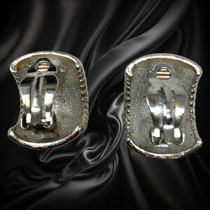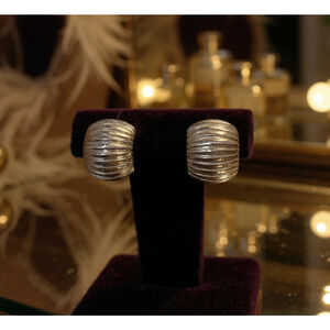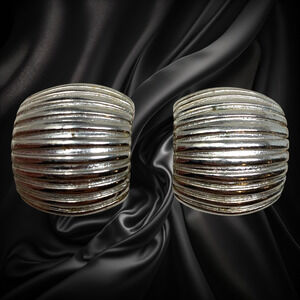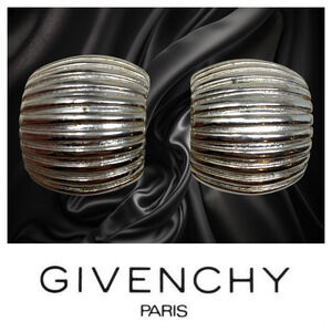 Vtg 1980's Givenchy Silver Tone Textured Ribbed Chunky Earrings Clip On Couture