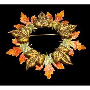 Vtg 1980s Kenneth Cole Gold Tone Autumn Leaf Wreath Lapel Pin Brooch