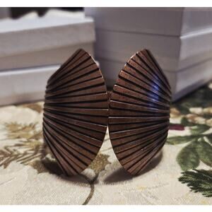 Solid copper colored metal Clamp cuff bracelet. Groove lines texturing. Shell design inspired. Springs sturdy & solid.