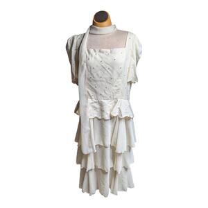 Vtg 1980s Michael Maiello Pat Richards Ivory Pearl Beaded Tiered Midi Dress 20