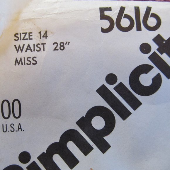 This is a FABULOUS vintage Simplicity sewing pattern. It is a pattern for misses' propotioned pants / personal fit in size 14, waist 28". Straight leg and are proportioned according to height and fullness of hip. This is genuine vintage from the 1980s - pattern number 5616 and the pattern is complete and cut with original instructions.