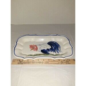 Vtg 1980s Porcelain Rooster Tray Handpainted Zanolli Italy 12x7x1.5