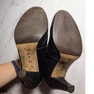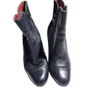 Vtg 1980s Rossella Dark Navy Blue Leather Embellished Studded Ankle Boots 38 7.5