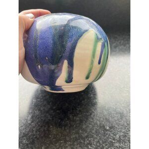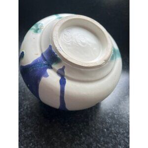 Vtg 1980's Round Bulbous Ceramic Vase One Single Hole Abstract Design Studio Art Glass Handmade