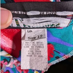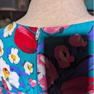 Vtg 1980s S.L. Fashions Turquoise Red Floral Print Short Sleeve Midi Dress Sz 12