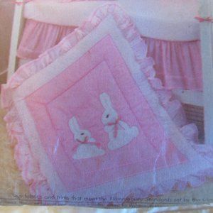 Vintage from the 1980s - pattern number 7361. The pattern itself is uncut and complete with all pieces. Instruction pages 1 & 2 are included for the quilt, pillow, and dust ruffle. Instruction pages 3 & 4 are missing which seem to be for the fitted sheet, head board/bumpers, and mobile/toy (again all pattern pieces are there & uncut).