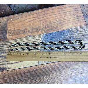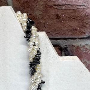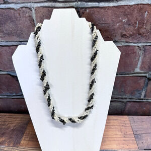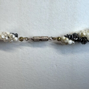 Vtg 1980s Twisted Strand Faux Pearl & Black Metallic Chip Bead Necklace Retro