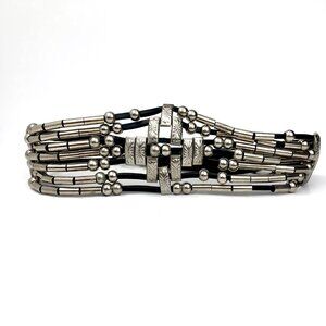 Vtg 1980s Wide Strappy Concho Silver Tone Belt Adjustable Boho Wstrn Retro Glam