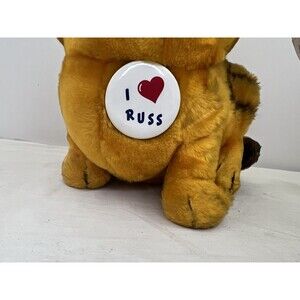 This vintage 1981 R. Dakin Garfield plush stuffed animal is a must-have for any collector. The 9-inch fat cat is in excellent condition and comes with original tags. Made in Korea, this rare find is part of the Garfield character family and is a great addition to any vintage toy collection. The plush is small in size and perfect for display or play. Don't miss out on the chance to own this adorable and collectable 80s toy.