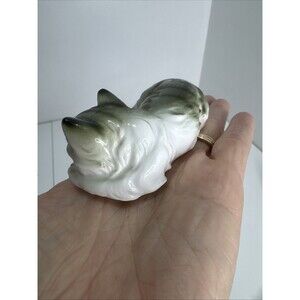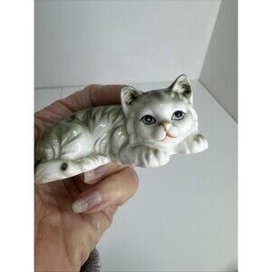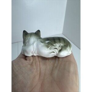 Vtg 1983 Enesco Gray & White Striped Cat Laying Down Ceramic Figurine 3” Mini