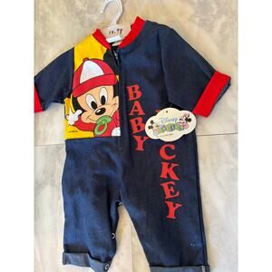 Vtg 1984 Disney Babies Mickey Newborn To 6 Months Denim Bodysuit One Piece NWT