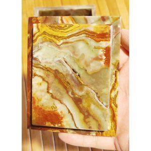 Vtg 1985 EDNA HIBEL Mother And Child Swirl of Red and Green Blood Stone Like Marble/Onxy Stone Polished Trinket Art Box.