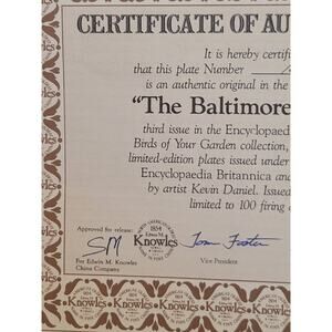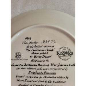 Vtg 1985 Knowles The Baltimore Oriole by Kevin Daniel Plate w/ COA & Box #18887C