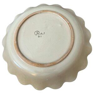 Vtg 1985 PIE PLATE Stoneware Signed Handpainted Ruffled Fluted Oven Safe Floral
