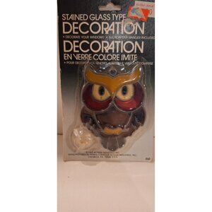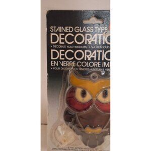 Vtg 1985 Stained Glass Owl Window Decoration Suction Cup Action Industries New