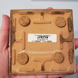 * Sticker on back says 4" Curved Kokopelli Arius Santa Fe Art Tile 1987 Cat INDN STK # 0204.
