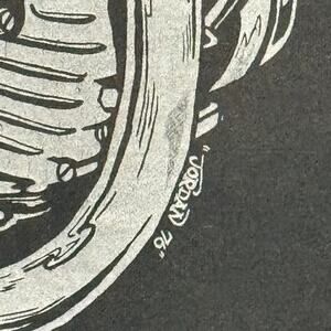 Printed on the front is a artist sketch of the Harley Davidson Flathead Motor By the artist "Jordan '76"