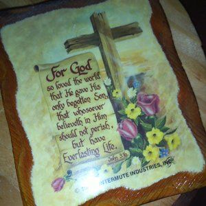 Vintage pristine condition 1987 Wintermute 4 pc découpage on wood Faith wall hangings; Faith prayer, Lord's Prayer, Psalm 23 and John 3:16. Has cuthole/keyhole in the back of each to hang. Rare in such beautiful condition. The Lord's Prayer and John 3:16 are small squares and Faith Prayer and 23rd Psalm are large ovals. 3x5" and 5x7" appx... price firm. Sale final.