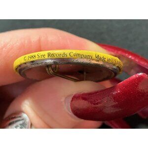Back in the 1980s and 1990s, my ex ran a very cool record store and he was always giving me promo items – cds, tapes, stickers, pins, t-shirts. This pin was a 1988 promo from Sire Records that I never wore. It’s been in storage for over 30 years. It is in very good condition with no damage.