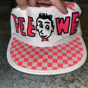 Vtg 1988 Pee Wee Herman Playhouse Pink Checkered Painters Hat Cap RARE!